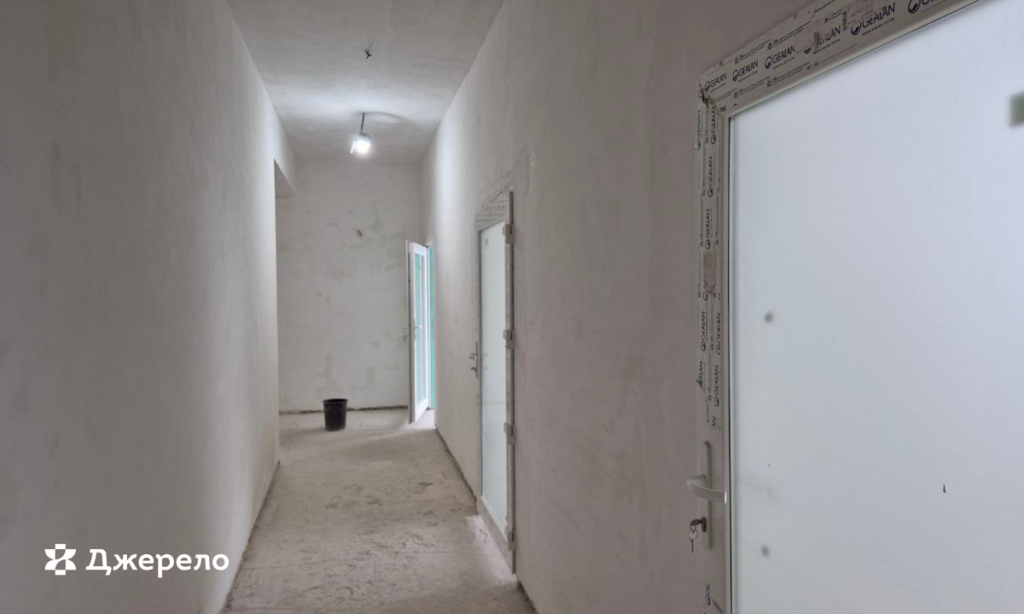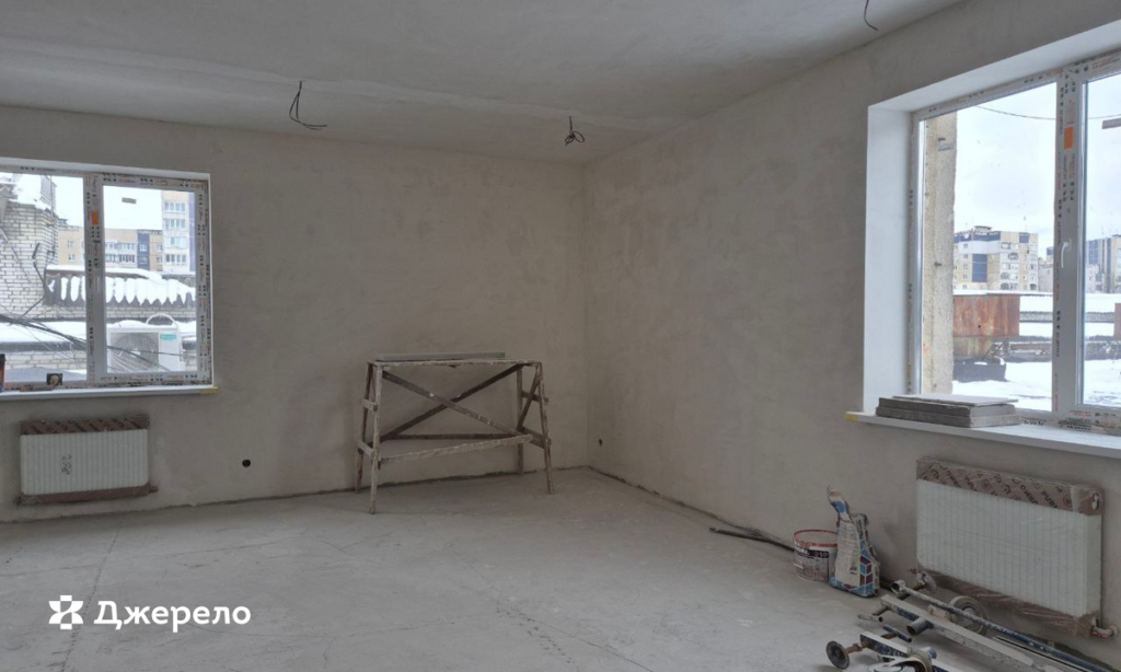Тут ще раніше демонтували старі вікна та підлогу, проклали електрику, встановили нові пластикові вікна та батареї та розширили дверні отвори. Нещодавно підрядники вирівняли та потинькували стіни.
