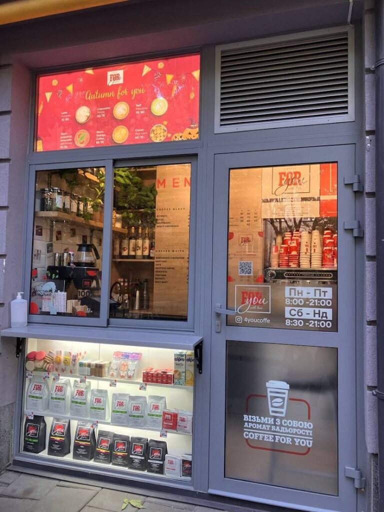 Це місце, де кава стає приємною паузою у вирі дня. Коли за вікном падає дощ, то хочеться сховатися від негоди у якомусь затишному місці. For you coffee може стати одним з них. Окрім теплої апельсинової кави та гарбузового лате на вас тут чекає великий вибір фруктових чаїв.