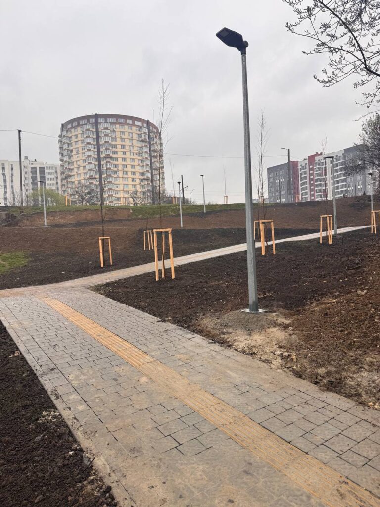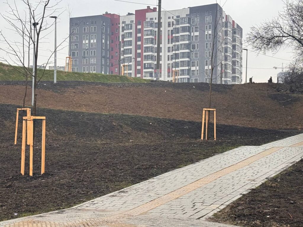 “За проєктом на цій ділянці мають бути дерева. Там вже висадили 13 лип. В частині, що стосується озеленення, то нам ще потрібно трохи часу. Схил впорядкували в плані зовнішнього вигляду, засіяли траву, але має пройти час, щоб вона піднялася”,