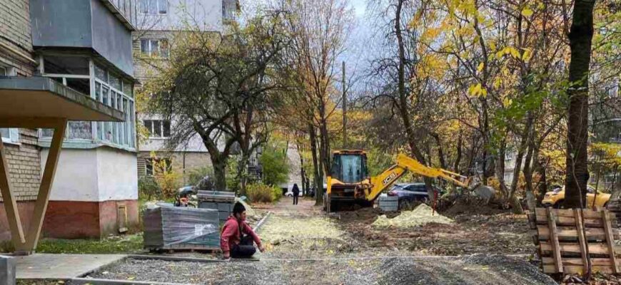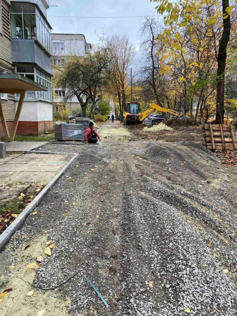 Поточний ремонт прибудинкової території проводять на вулиці Тернопільській, 2 — за програмою співфінансування разом із мешканцями.