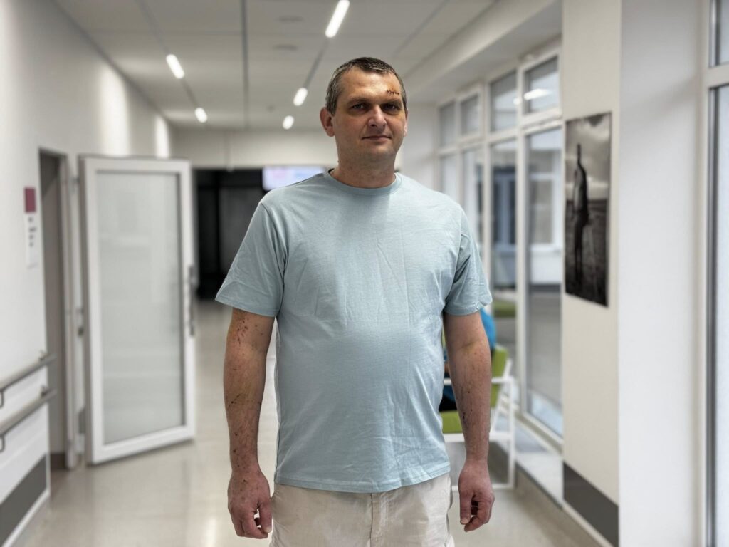 Одними з перших на місце прильоту прибули парамедики добровольчого медичного батальйону “Госпітальєри”, які і доправили Юрія до лікарні. У пацієнта переважно були осколкові поранення верхніх та нижніх кінцівок. Але один із найбільших уламків скла, довжиною аж 10 см, зайшов в грудну клітку, пробив ліву легеню та застряг просто біля низхідної частини аорти – найбільшої судини в організмі.
