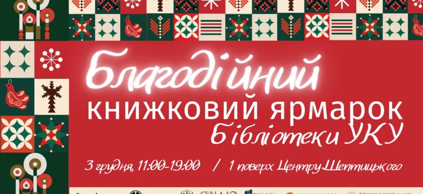 3 грудня, з 11:00 до 19:00, на першому поверсі Центру Шептицького в УКУ відбудеться благодійний різдвяно-миколаївський книжковий ярмарок, організований Бібліотекою УКУ. Цей захід стане чудовою можливістю не лише придбати нові книги від провідних видавництв, але й долучитися до важливої справи – допомоги тим, хто потребує підтримки в умовах війни.