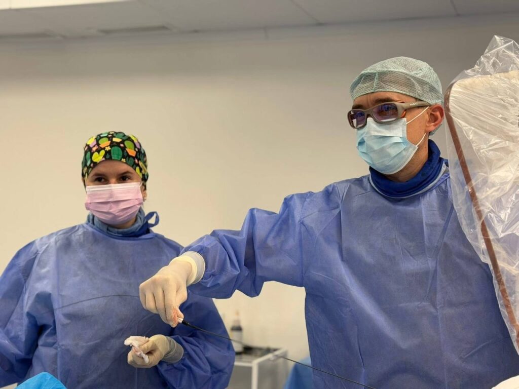 “Відразу після встановлення стента у пана Романа виникла шлуночкова пароксизмальна тахікардія — це смертельно небезпечне порушення ритму. Серцебиття пацієнта пришвидшилося до 200 ударів на хвилину. Наші спеціалісти негайно розпочали непрямий масаж серця та електричну дефібриляцію. На щастя, чоловіка вдалося врятувати”,