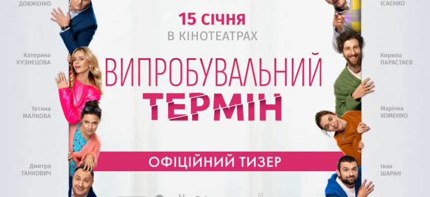В українських кінотеатрах уже 15 січня 2026 року стартує нова історія про кохання, амбіції й другий шанс — «Випробувальний термін», романтична комедія 1+1 media та SFERA FILM. Творці фільму презентували перший офіційний тизер, в якому зʼявилося понад десять улюблених акторів і зірок шоубізу.