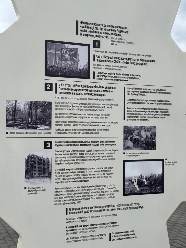 “Я сподіваюсь, що зведені в цій експозиції факти, допоможуть багатьом (як в Україні, так і за кордоном) нарешті зрозуміти: що сами, і яким чимном, завжди робила та продовжує робити Росія”, — наголошує автор проєкту Леонід Брагін.