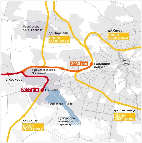 Станом на 2027 рік євроколія має зайти на станцію Скнилів. Потім вона має пролягати до головного вокзалу до 2030 року.